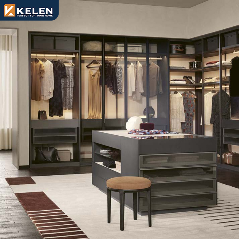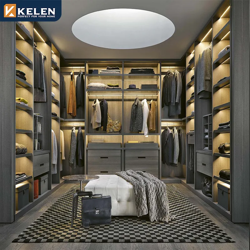 Kelen 2026 Custom Luxury Modern Walk in Closet Wardrobe Systems Design Wood Bedroom Cupboards for Bedroom Open Wardrobe